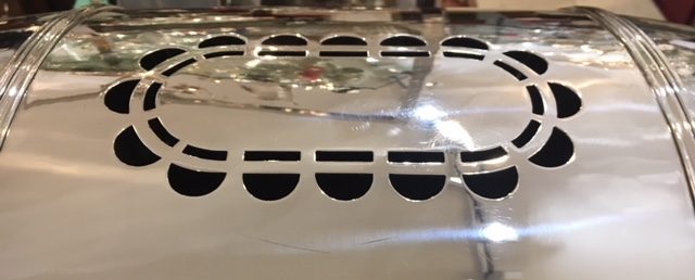 La rosace au sommet de la cloche permet d’évacuer la condensation du bain-marie, celui-ci permettant de maintenir au chaud la viande ainsi que les deux pots à sauce.