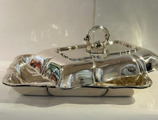 Ce légumier en argent massif est de forme rectangulaire, son décor : un joli filet contours.