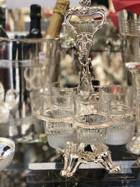 • 7 supports, en métal argenté, pour 5 verrines : 180€ pièce