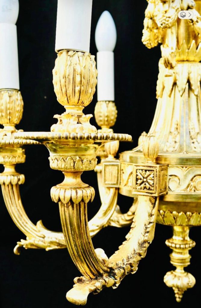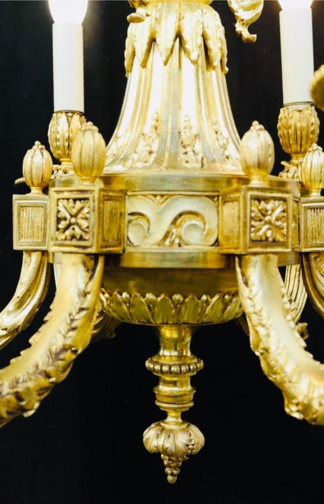 Très beau lustre à 6 lumières, en bronze doré, d’époque Napoléon III.
