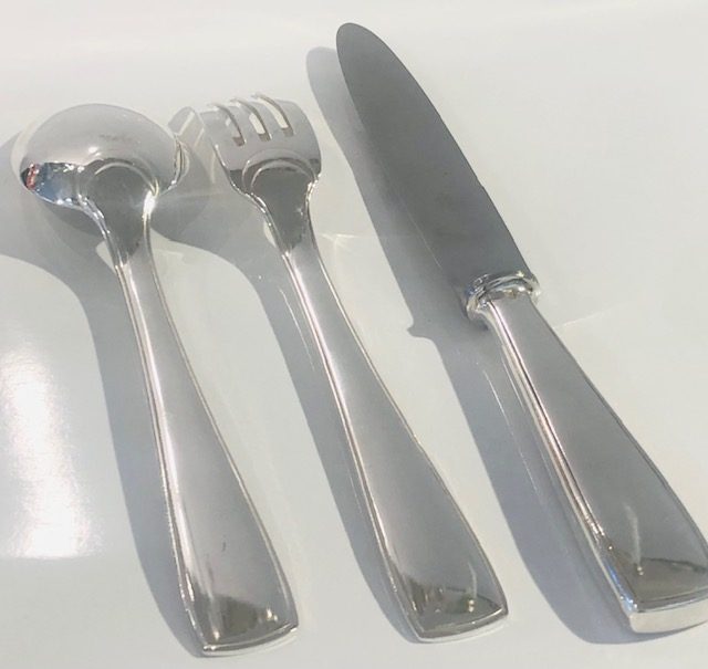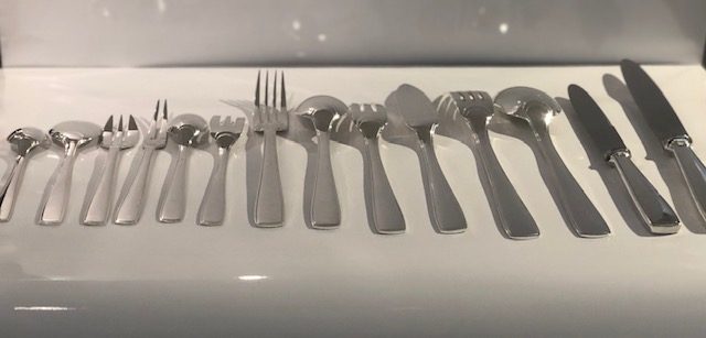 Cet ensemble de couverts, en parfait état, est dans un très beau coffre en bois fait sur mesure pour accueillir 184 pièces.