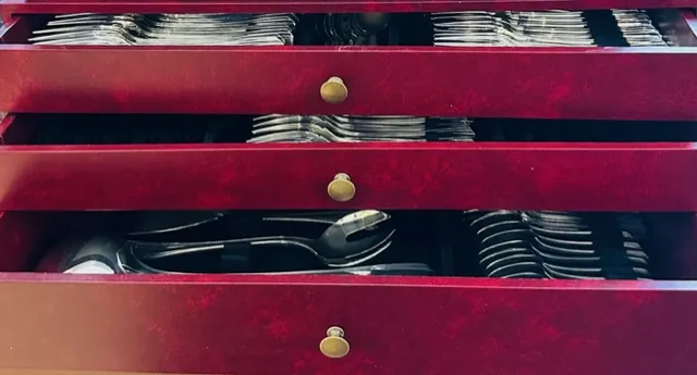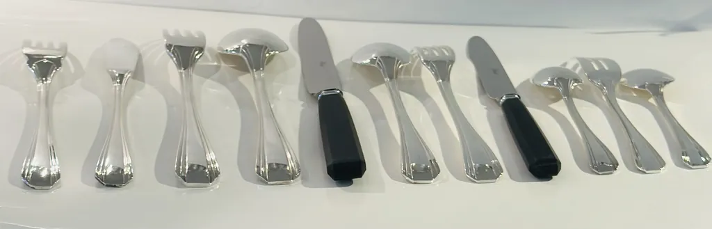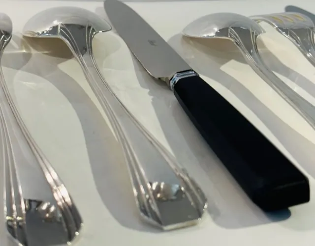 Le modèle de cette jolie ménagère s’appelle Boréal. Il a été dessiné par le grand Designer Luc Lanel pour la maison Christofle dans les années 20.
