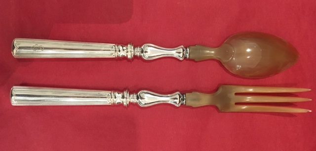Vous remarquerez que les couteaux ont une forme plus carré donnant à cette ménagère ancienne un coté moderne. Ce modèle est très rare ce qui le rend unique.