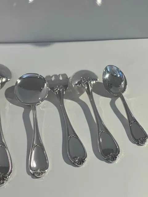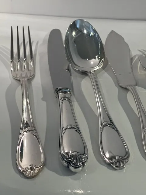 Argenterie d’Antan vous propose une très jolie ménagère de style Louis XV, modèle Pompadour dont le nom fait référence à la favorite de Louis XV.