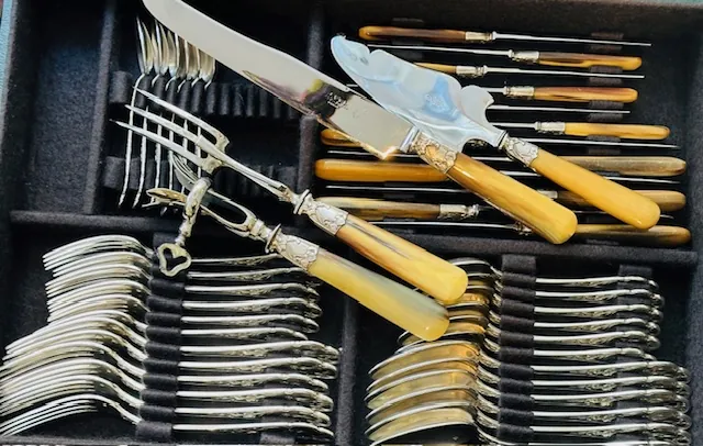 Argenterie d’Antan vous propose une jolie ménagère au décor végétal.