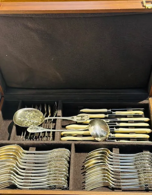 Cette jolie ménagère, dans un coffre en bois, antioxydant, se compose de 51 pièces