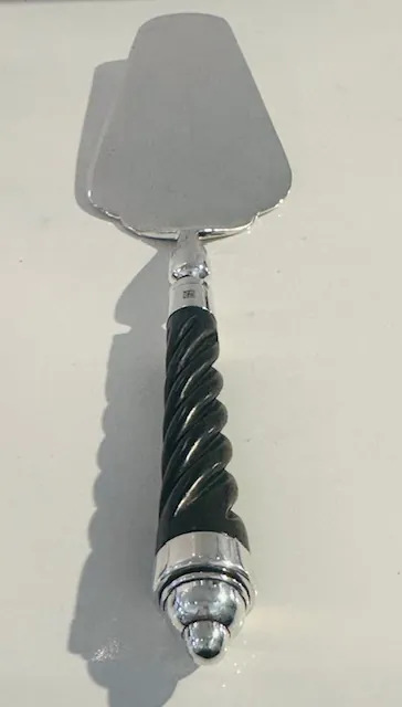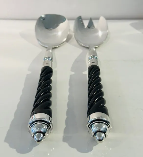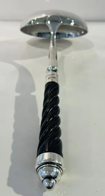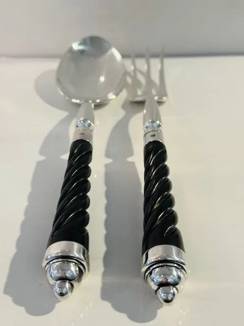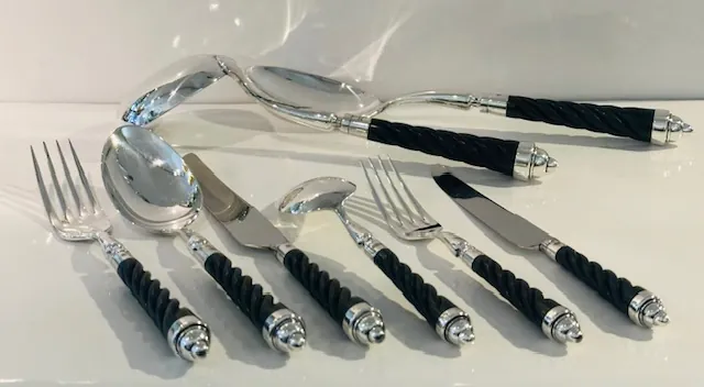 Argenterie d’Antan vous propose cette jolie ménagère en métal argenté dont les manches en ébène ont un design torsadé unique donnant un look très élégant.