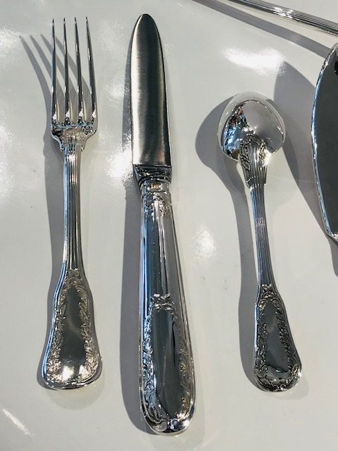 Cet ensemble de couverts et pièces de service, au décor feuillagé, est signé Puiforcat, orfèvre en excellence depuis 1820.
