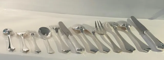 Cette jolie ménagère en parfait état, comprend 164 pièces, dont 14 pièces de service, toutes dans un coffre antioxydant.