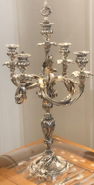 Cette paire de chandeliers, de style Louis XV, captive le regard par ses jolies courbes dont le décor, de feuilles d’acanthe et de roses, s’inspire de la nature.