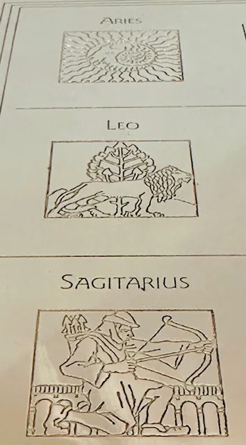 Les douze signes du zodiaque sont gravés sur le plateau.