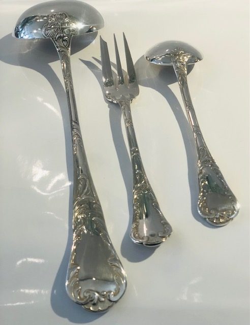 Elle se compose de 77 pièces, en parfait état, dans son coffre Christofle d’origine, en feutrine rouge.