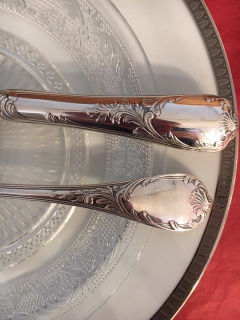 Chaque saleron possède sa cuillère à sel or et argent. Ils sont en forme de coquillage surmontés d’un mascaron fantaisie servant de prise.